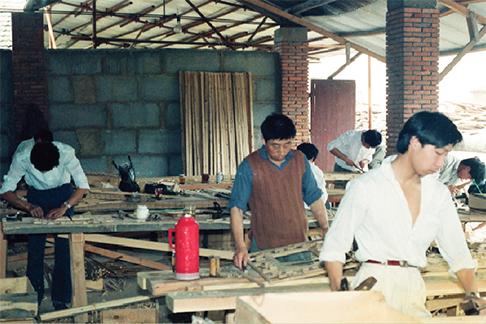 1982年 苏州古典园林建筑公司征用苏州市郊双桥大队第七生产队土地19亩,吸收并安置征土工52名,建立起生产基地,这是我们最早的生产基地,并一直沿用至2000年。